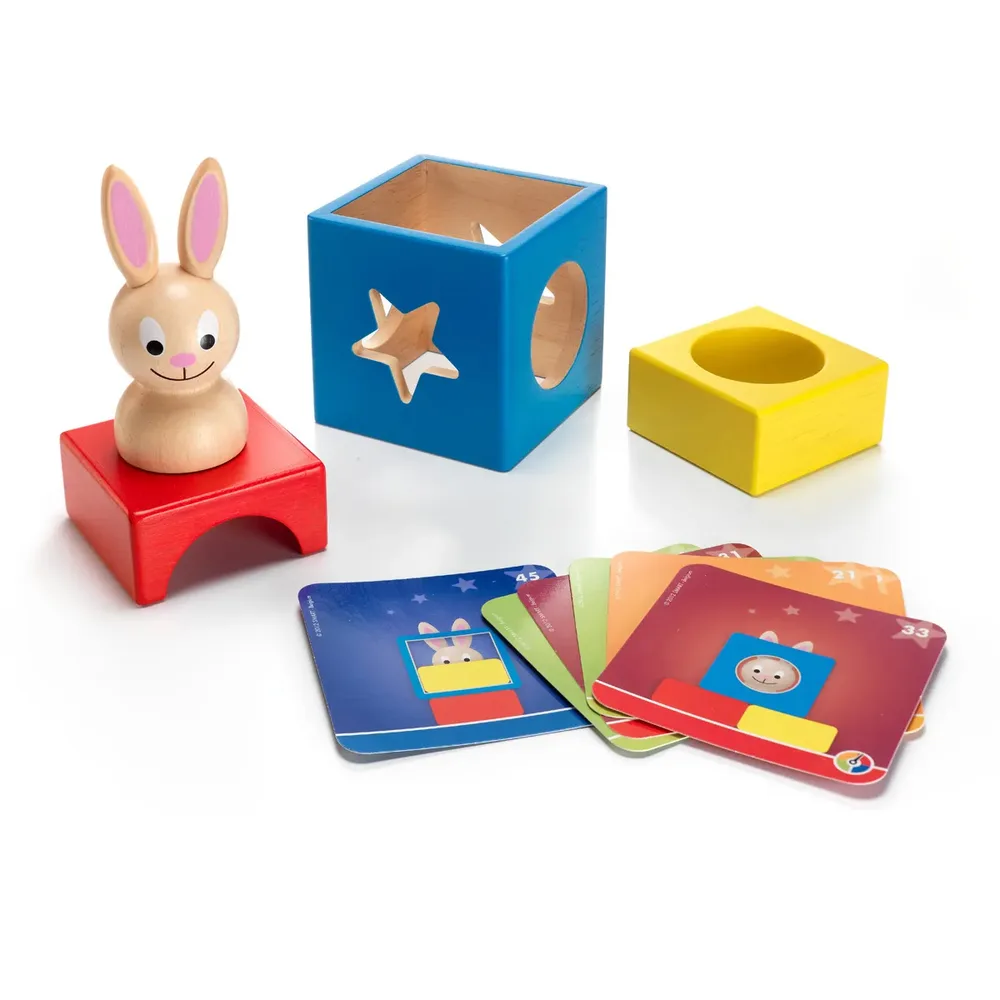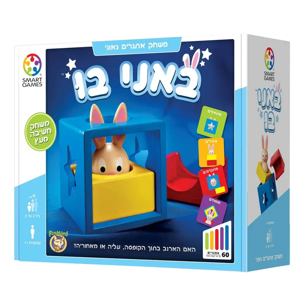 הוציאו ארנב מהקופסא! באני-בו הוא משחק תלת-מימדי לקטנטנים, המכיל 4 חלקי עץ גדולים. האם הארנבון מציץ דרך החור העגול, או אולי דרך הכוכב? האם הוא עומד מעל החלק הצהוב, האדום או הכחול? באמצעות באני-בו ילדים קטנים יכולים לגלות את העולם התלת מימדי, או פשוט לשחק!