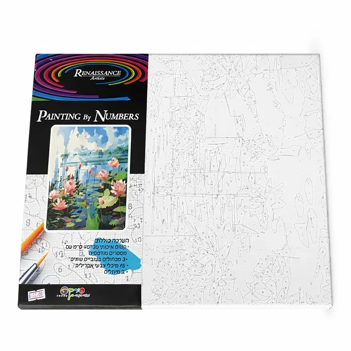 כוללת קנווס איכותי בגודל 30×40 ס"מ, צבעי אקריליק מוכנים, 3 מכחולים ואביזרי תלייה – כל מה שצריך ליצירה מושלמת במקום אחד.